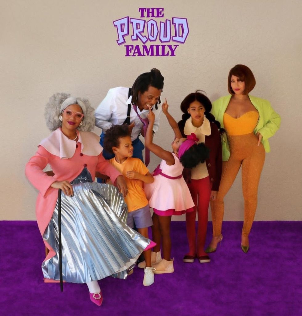The photo features Beyonce,  Jay-Z and their three kids dressed up as “The Proud Family”.