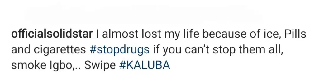 Solid Star who went public with his experience on Instagram, revealed that he almost lost his life because of ice, pills, and cigarettes.