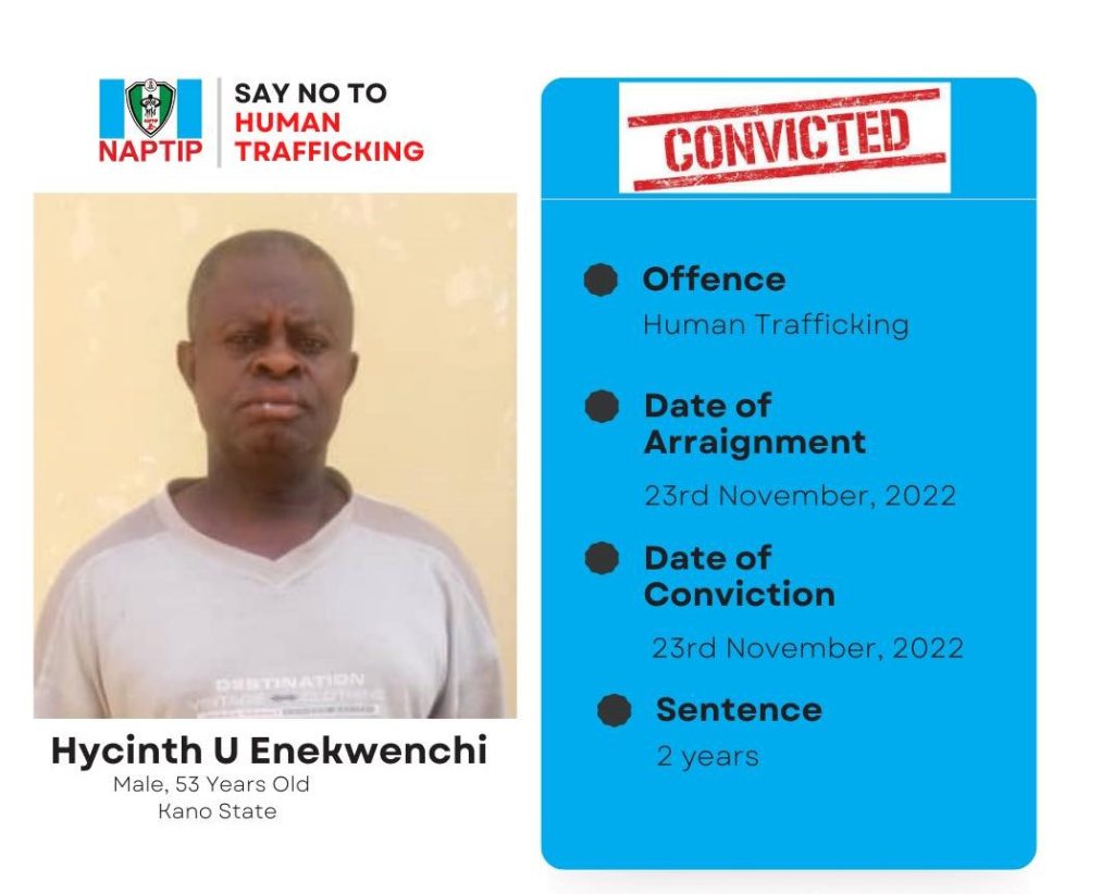 A Kano State high court has sentenced a 53-year-old man, Hycinth Uchechukwu Enekwechi to two years imprisonment for attempting to procure the illegal entry of three girls from Oyo and Osun to Libya through Niger Republic.