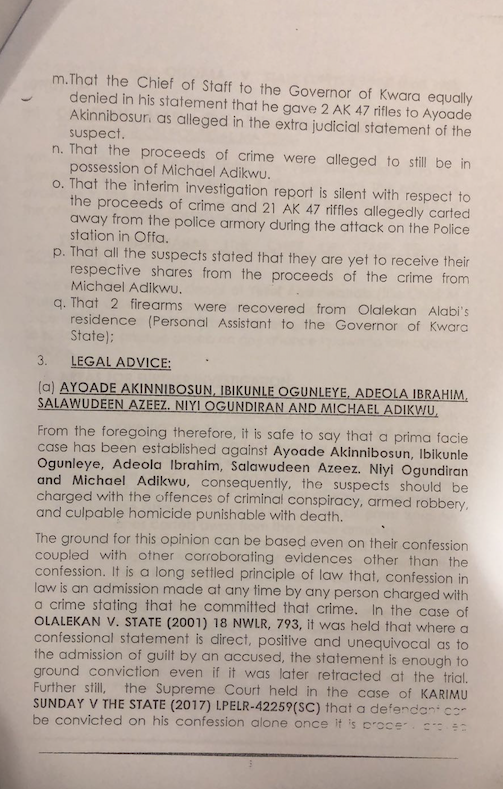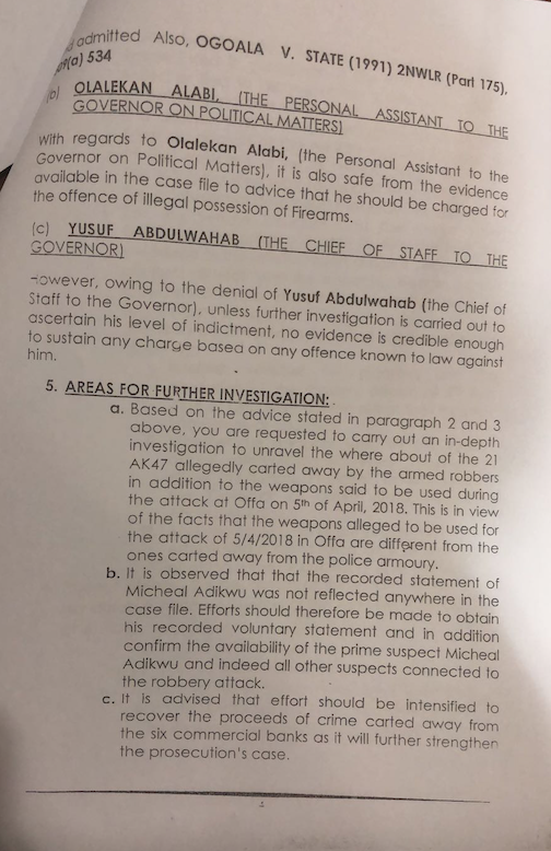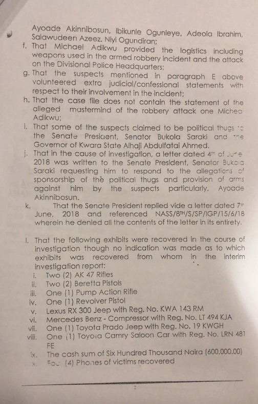 “ii. Whether the weapons used for the robbery attack aforementioned were supplied by either the senate president, Bukola Saraki or the governor of Kwara state, Abdulfatai Ahmed.