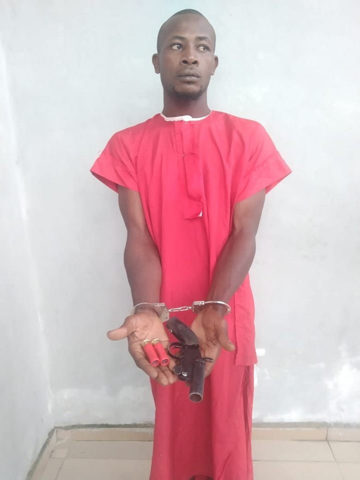 “Suspect concealed the gun in his body close to his private part. Preliminary investigation revealed that he bought the gun in the year 2018 from a man nicknamed “OSE” for twenty-seven thousand naira(#27,000) and buried it in his house before leaving for Ghana. He was arrested and taken into custody, the exhibit recovered, and investigation is ongoing.”