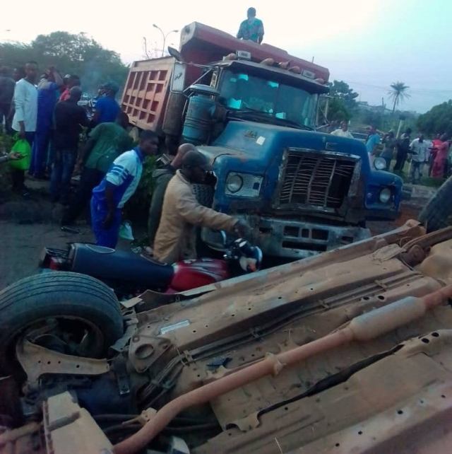According to reports, a truck popularly referred to tipper, with registration number FNN 364 XA, loaded with sand was heading towards stadium on the West bye pass before its brake failed as it approached the sloppy Lameco roundabout.