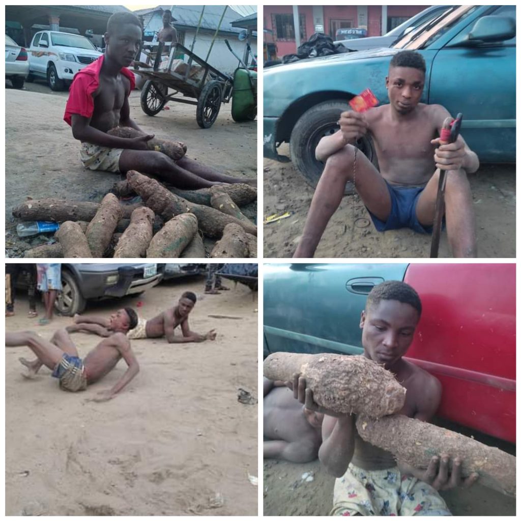 According to Okutukutu Youth Movement (OYM) president, Kester Wilcox, one of the suspects confessed to have stolen the yam in another community and was taking them to the market to sell.