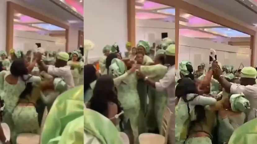 In the video, the women exchange blows while other guests try to intervene, turning the celebration into a chaotic scene.